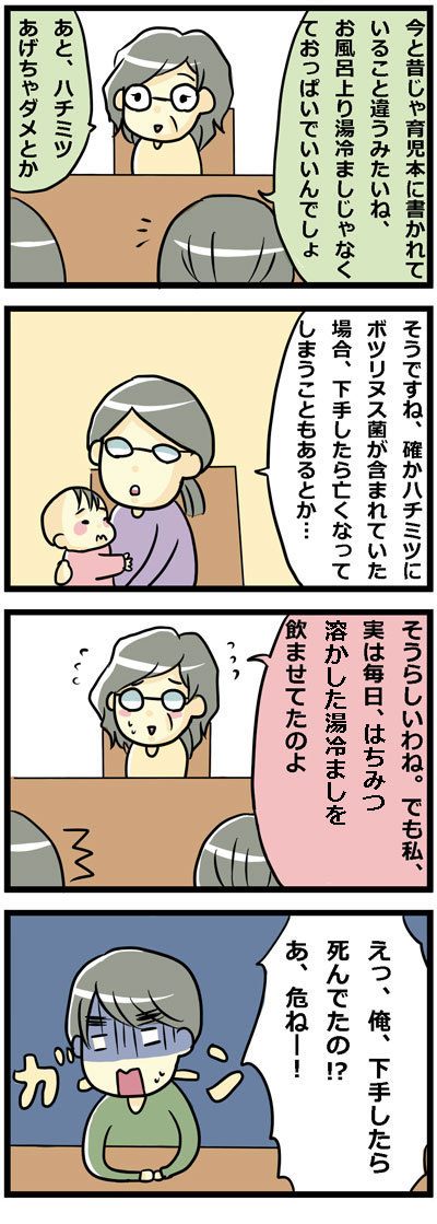 義母の告白 2015年10月08日 シルバーウィーク義実家滞在記⑤今、調べてみたら1987年に厚生省が乳幼児にハチミツは食べさせないように発表したんですね。なのでそれ以前に赤ちゃんがいたご家庭ではハチミツ食べさせていたところはありそうですね。私も食べてそう・・・(親に未確認ですが) ... 続きを読む