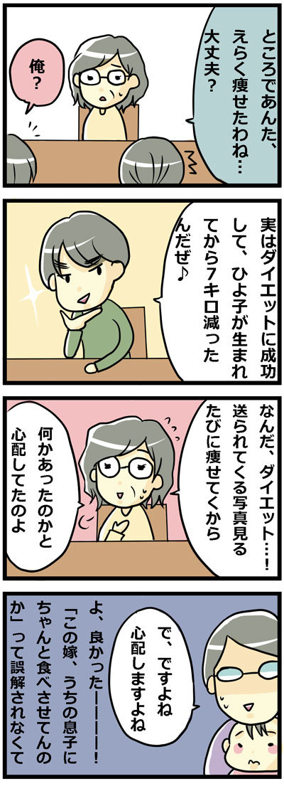 7キロ痩せやがった! 2015年10月06日 再び義実家のお話です。シルバーウィーク義実家滞在記③メタボということもあり、娘出産直前に突如ダイエットに目覚めた旦那。あれよあれよと7キロの減量に成功。その顔は勝ち誇ったかのようにニヤニヤでした。。出産以降体重が戻らない嫁としては、憎らしい・・・!しかし ... 続きを読む