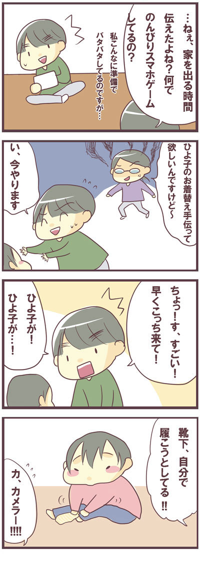 ひとりでできるもん 2016年05月22日 出掛ける準備をしていた時の出来事です。 初めて自分で靴下を履こうとしました靴下に足が入らなくて全然履けないのですが、足を一生懸命入れようとする姿は大変可愛かったです他にもスタイを渡すと首回りに持っていくことがあるので、自分が身につけるものを認識し始めて ... 続きを読む