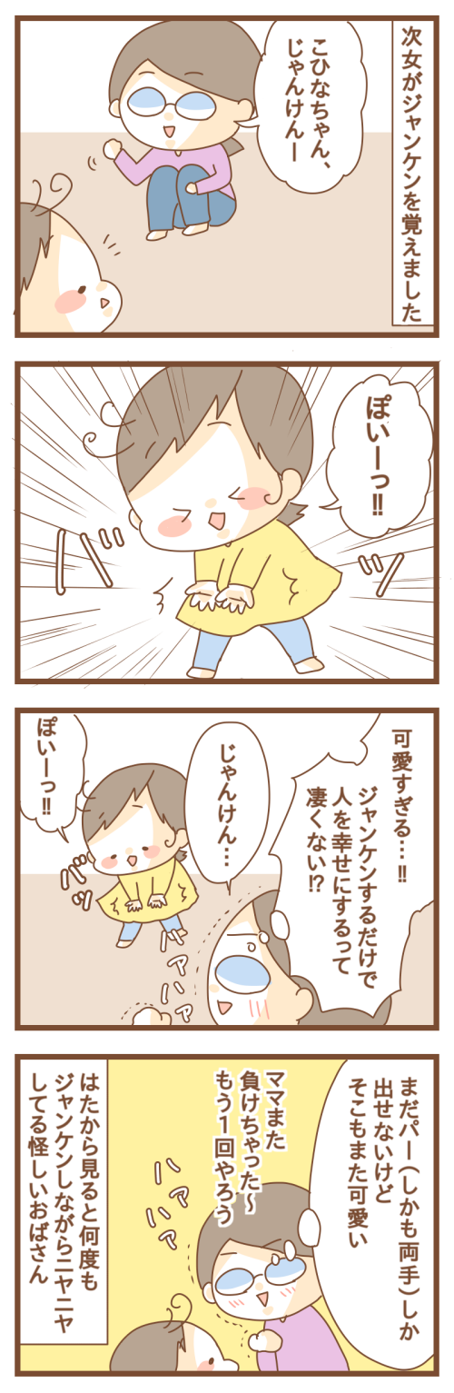 ジャンケンは私を救う 2019年01月25日 動画でお見せ出来ないのがもどかしいのですが、「ぽいーっ!!」の言い方とか動作が最高に可愛いんです…!! 次女がイヤイヤ期真っ只中なのでしんどいことも多いのですが、こういう色んなことを覚えて見せてくれる姿は可愛いし癒される(*´ω`*) しかしイヤイヤ期 ... 続きを読む