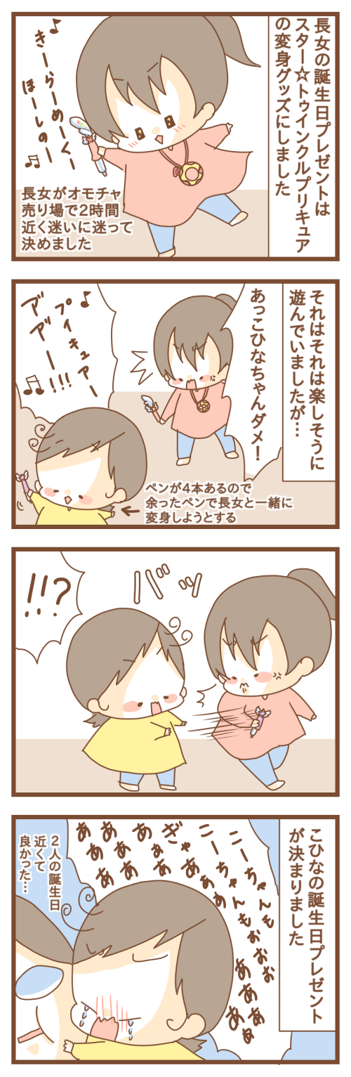 誕生日が近い姉妹のプレゼント 2019年03月25日 長女の誕生日プレゼントのスターカラーペンダント スター☆トゥインクルプリキュア 変身☆スターカラーペンダントDX [おもちゃ&ホビー]バンダイ(BANDAI)2019-02-02 ペンが4本あるので長女が使っていないペンで変身しようとする次女ですが、長女も自分の誕生日プレゼン ... 続きを読む