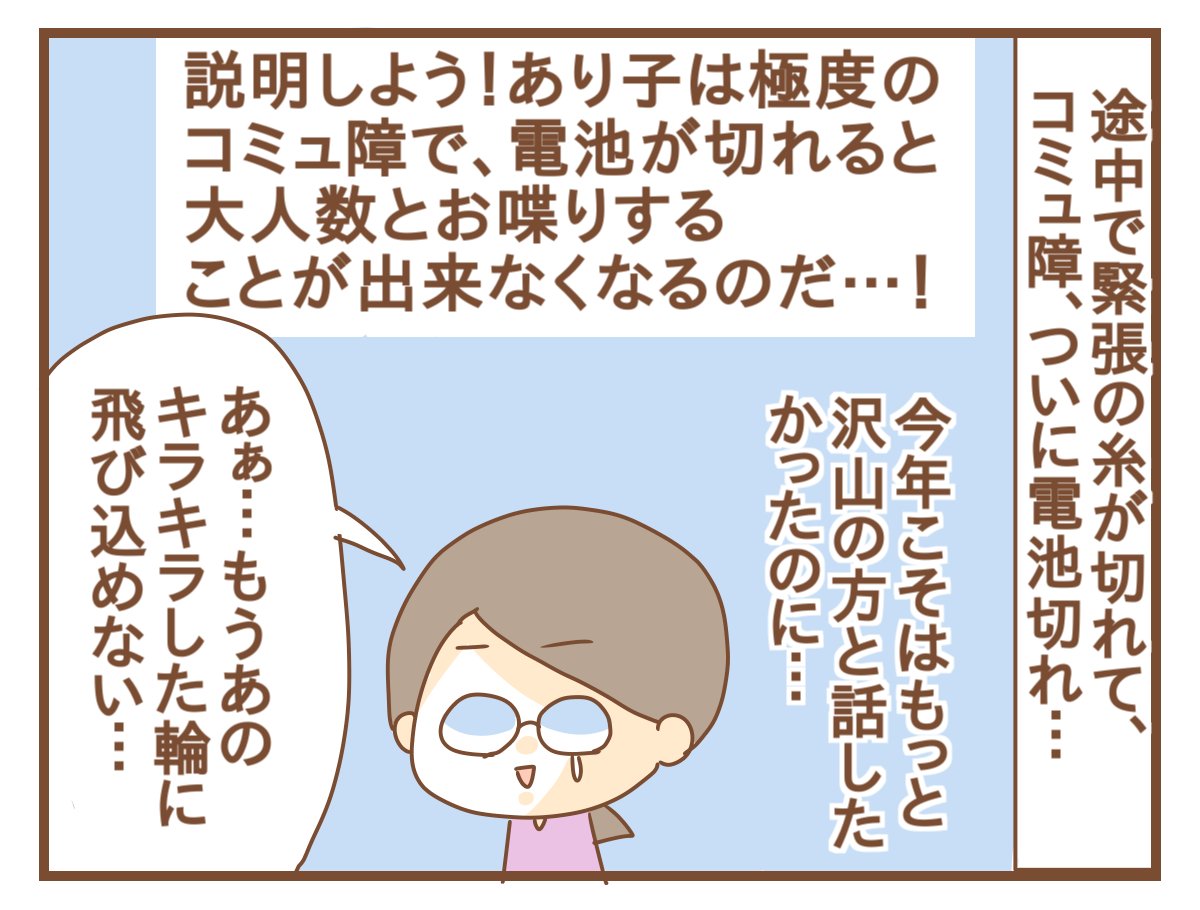 電池が切れて隅の方でケーキを食べたり隅の方を徘徊したり(挙動不審)最後は力尽きて椅子に座ったままというコミュ障っぷりヽ(;▽;)ノ