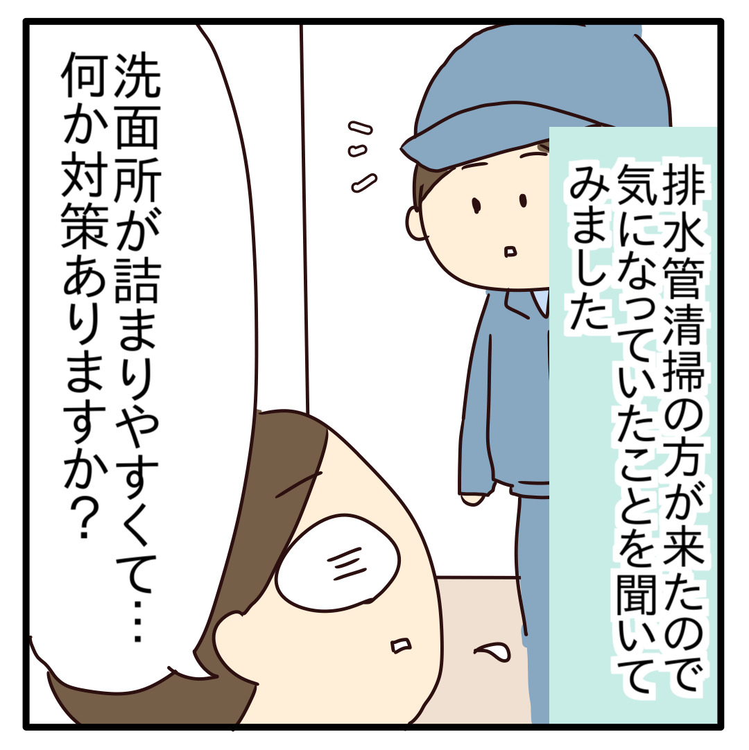 うちは黒いヘドロのようなものがくっついて詰まりそうになることがあり、ちょうどマンションの配水管清掃があったので聞いてみました!