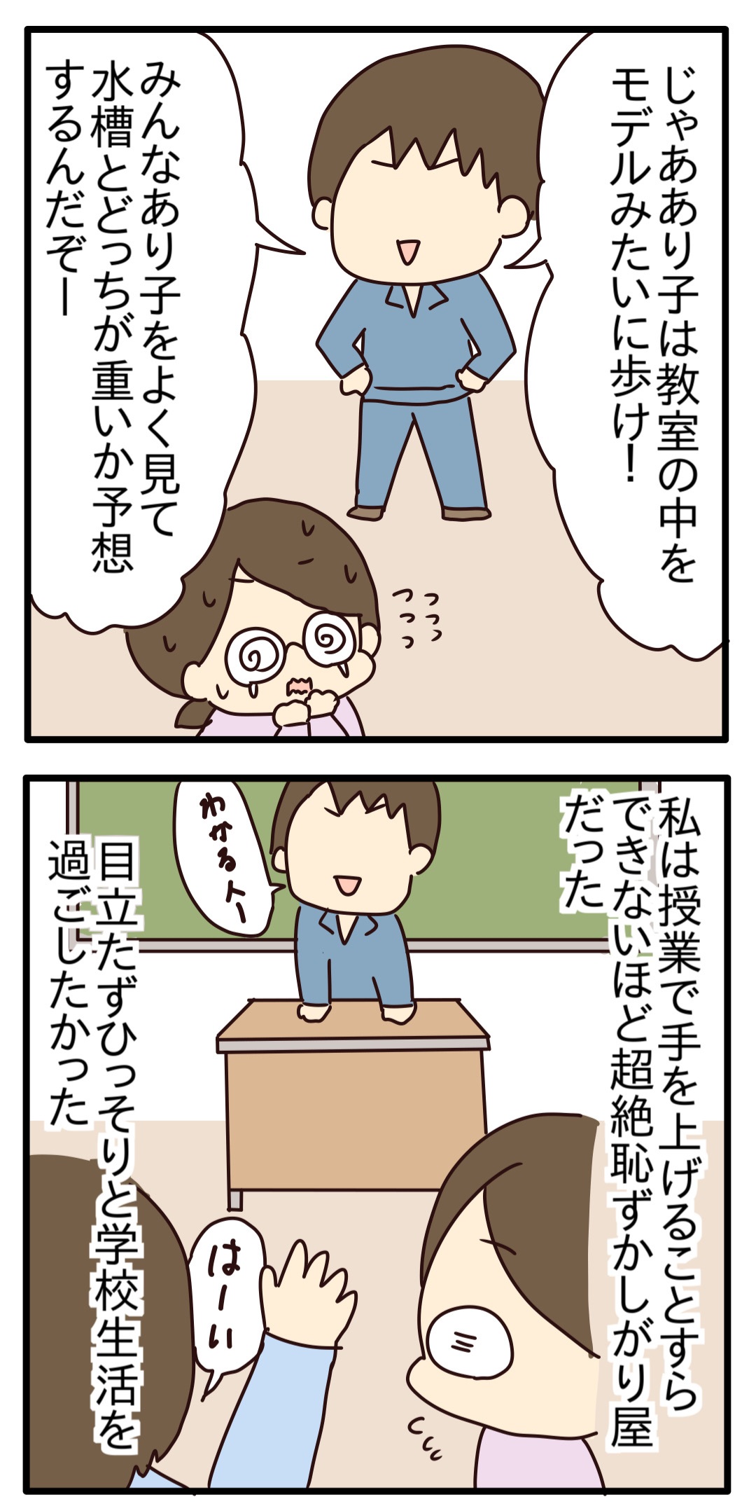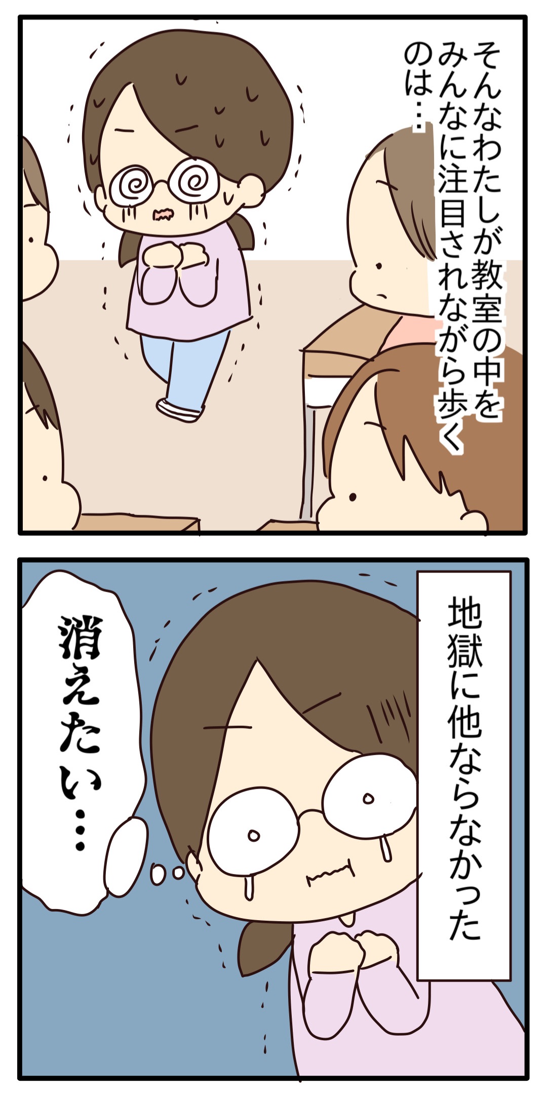 みんなの前に立つだけでも辛かったのに、さらに教室中を歩かされるという地獄が待っていました…