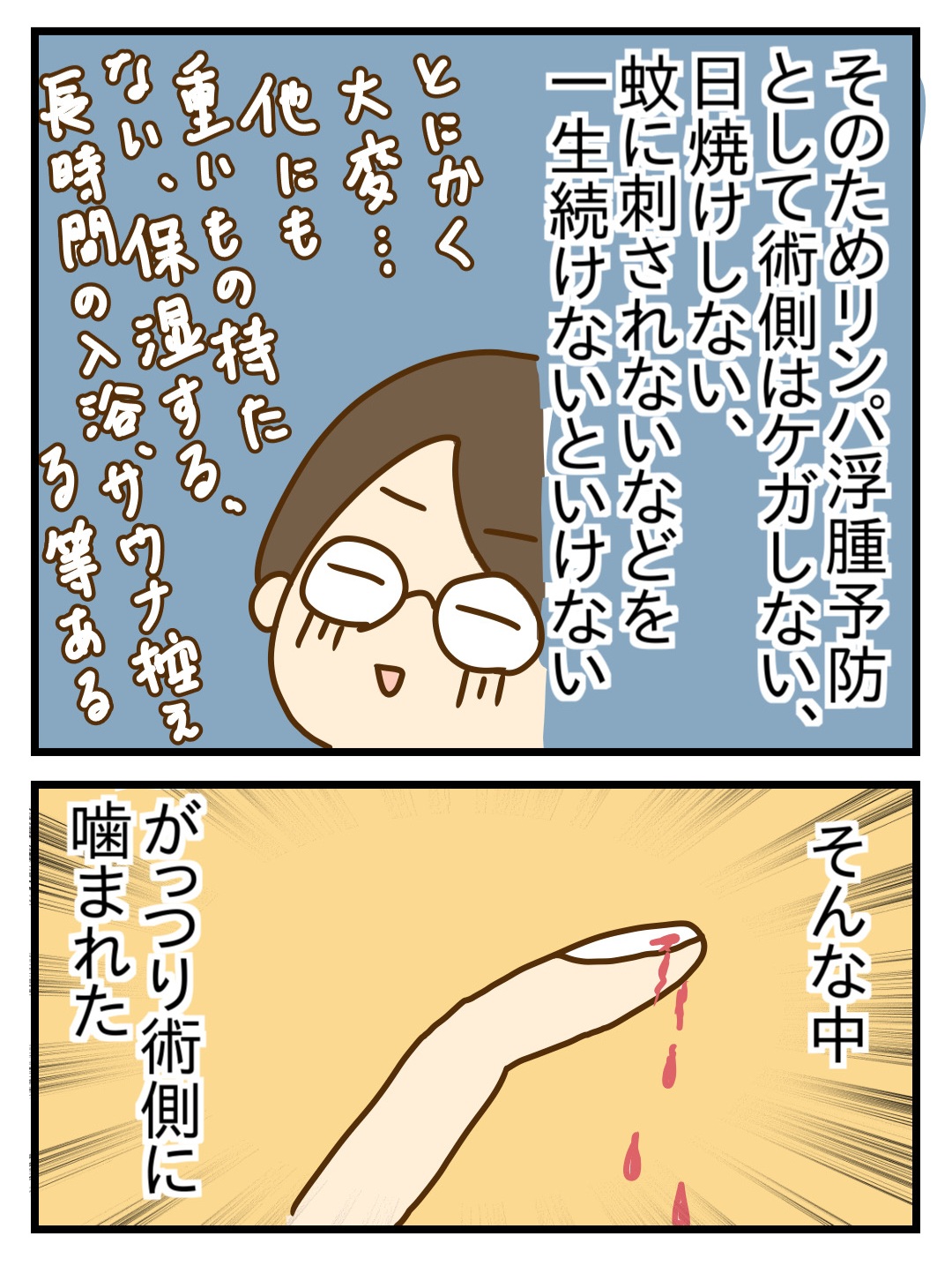 その中の1つが傷をつけない、なのですが術側をがっつり噛まれたので念のため病院へ行ってきました。