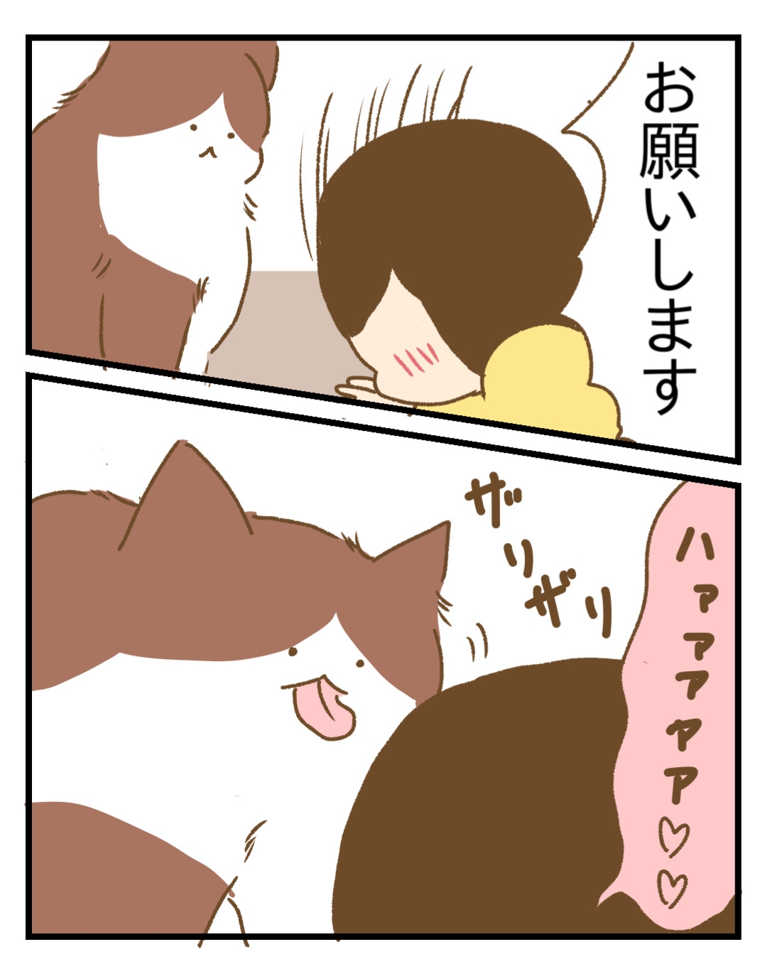ハーくんはごく稀に舐めてくれることはあるのですが、ワーたんは頭を出すと誰でも舐めてくれました🤭